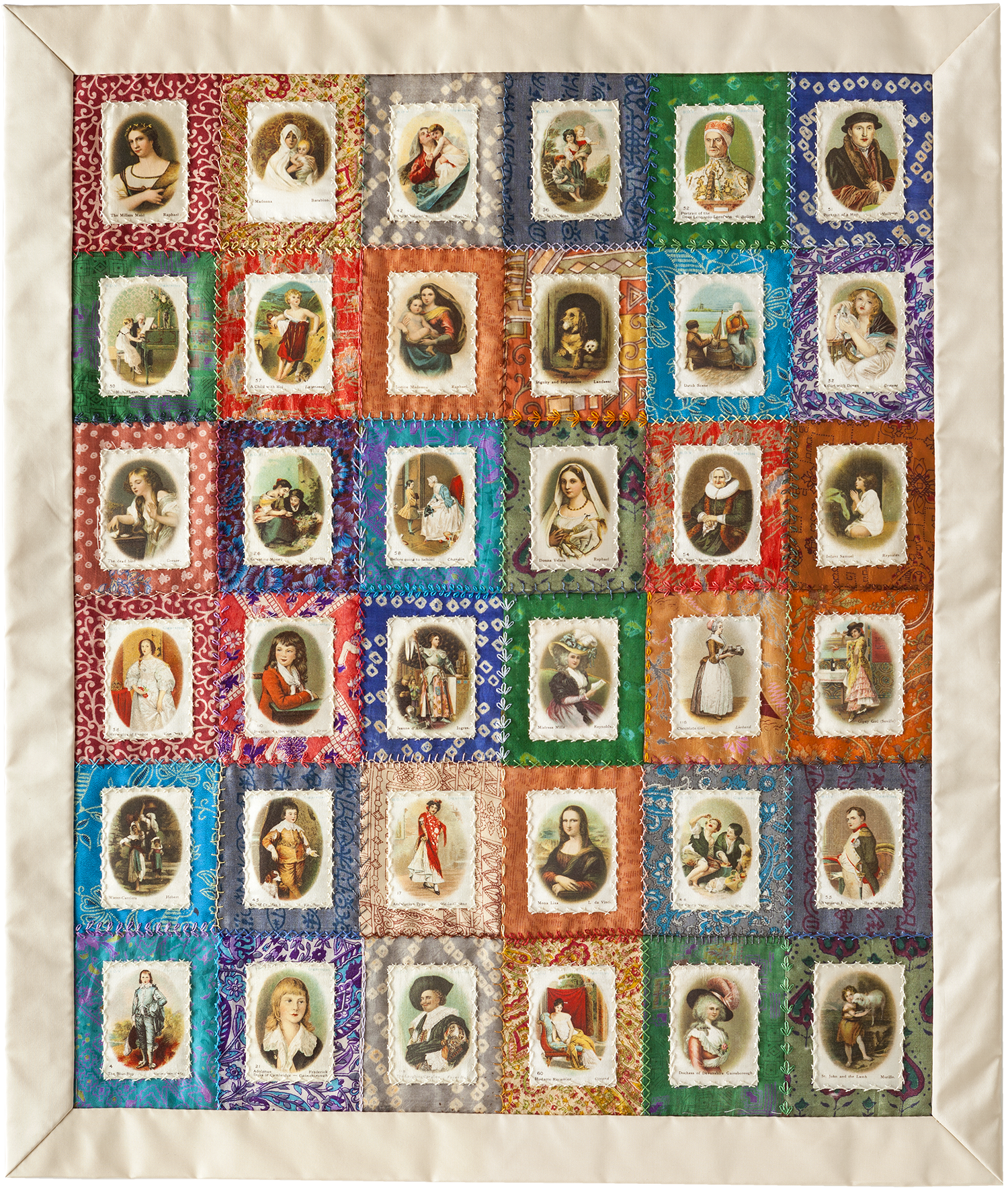 The juxtaposition of the tobacco company names with fine, old master paintings is striking. Hand embroidery finishes each framed painting. Anon and Phillips B.D.V. Cigarettes tobacco silks, 1922.